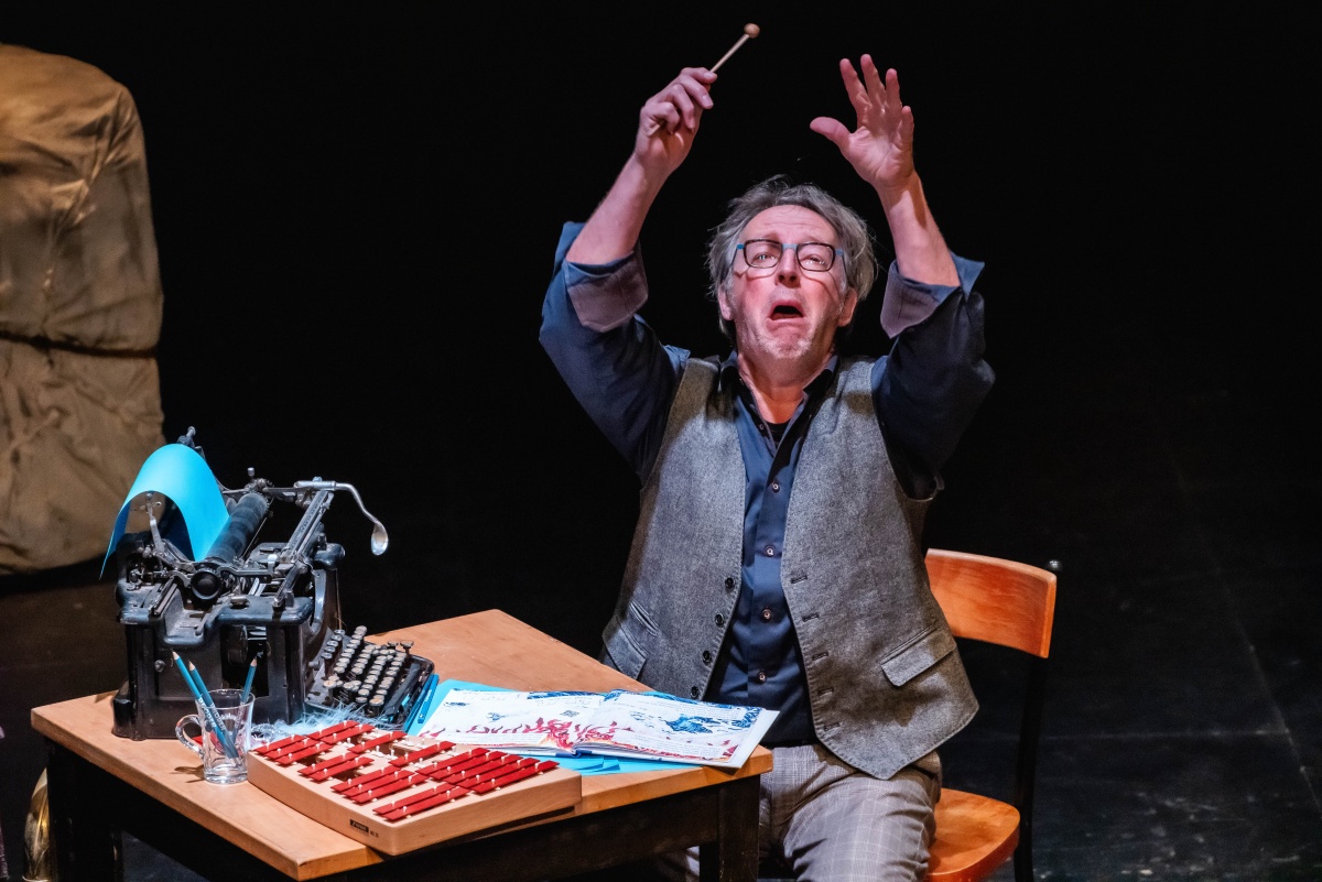 Een vertelling op live pianomuziek van een spannend luisterspel met betoverende liedjes. Op rijm, met blauwe pluimen en een beetje vogelkak op het hoofd. En met verrassend en wondermooi figurentheater, want het saaie bureau van kleine Mo plooit open tot een grootse fantasie. Potloden worden wilde golven en boeken vliegen op als vlerkende vogelwiekers.