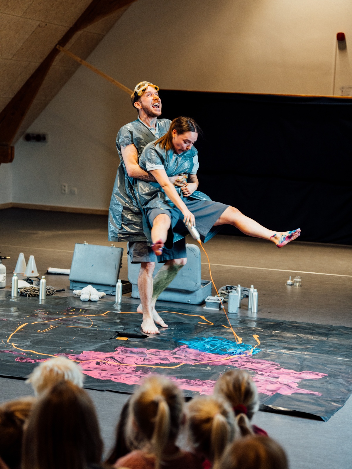 In SPAT! SMOS! OEPS, IK MORS! ontdek je hoe leuk het kan zijn om samen te mogen morsen. Een expressieve slapstickvoorstelling vol geknoei, durf en 1 klein wonder. Want soms heb je gewoon een vriend en een kleurige kladder gekkigheid nodig!