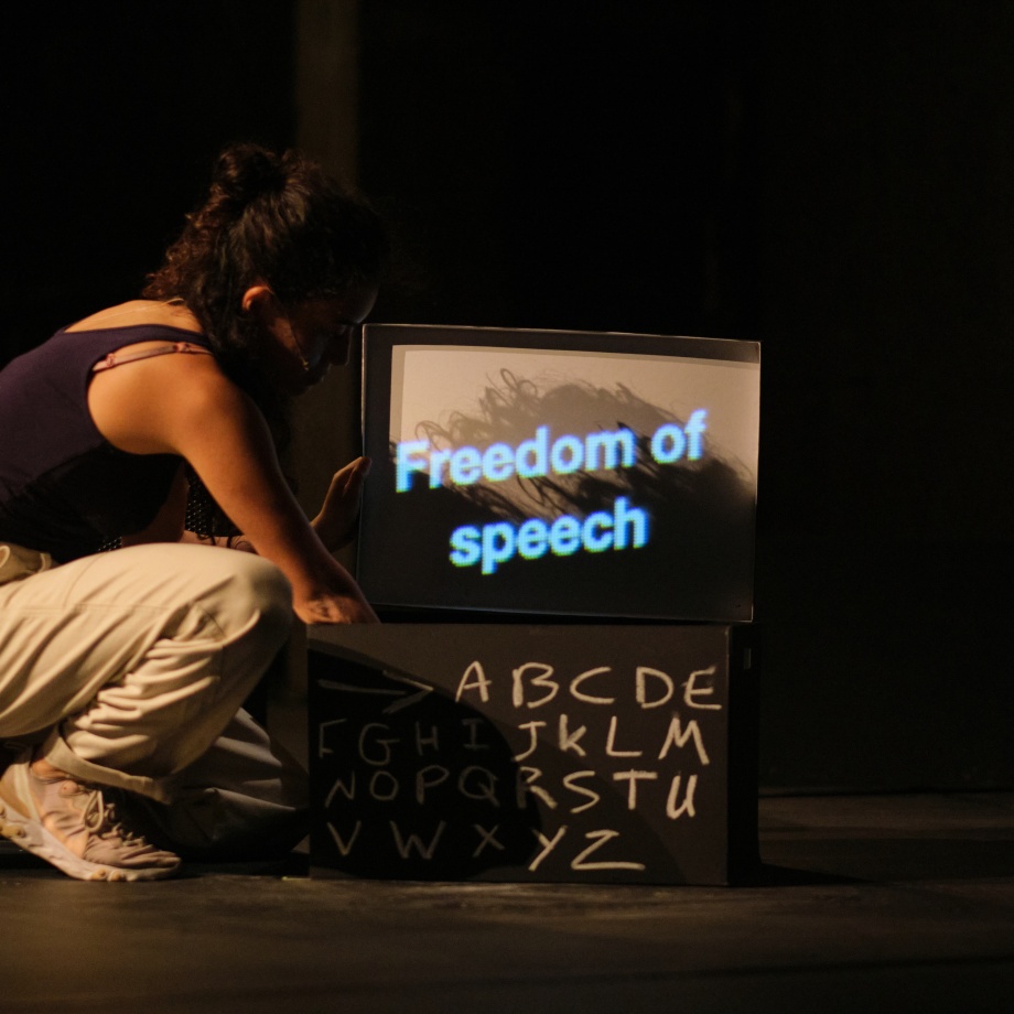 Gemma & Veerle: Eén van de voorstellingen die we samen zagen, was ‘Language: no broblem’ van Marah Haj Hussein. We waren er zó enthousiast over dat we het aan Jesse doorgaven. Intussen is de voorstelling effectief geprogrammeerd bij c o r s o. Daar zijn we ontzettend trots op.