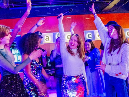Yasmina: “Een klein podium in de foyer staat open voor club c o r s o: daar bepalen jongeren zelf wat ze willen programmeren. We houden er karaokeavonden, en ook de speeddate met Valentijn is een idee van de jongerenambassadeurs. Daarnaast organiseerden we al twee keer een iftar-avond. De eerste keer was echt een spannend experiment, want we wisten niet of er animo voor zou zijn. We deelden flyers uit en spraken mensen aan in de buurt. De iftar was niet enkel op jongeren gericht, maar trok een breder publiek aan.”
