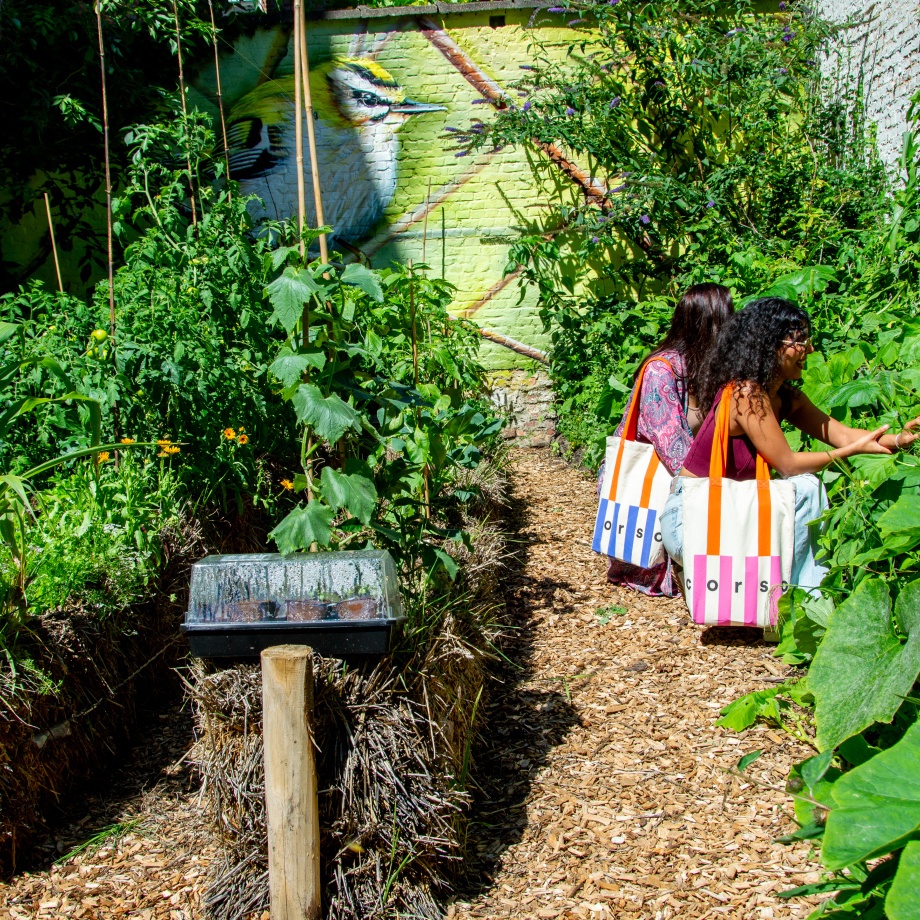 In het achterste gedeelte van de tuin bevindt zich een samentuin en buurtcompost die alleen toegankelijk zijn voor de mensen die zich hiervoor ingeschreven hebben. Heb je zin om mee te doen? Contacteer dan Bram Van Hove van buurthuis Posthof via bram@posthofvzw.be.