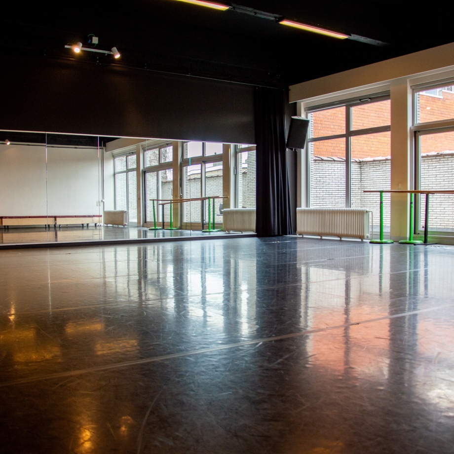 Studio 4 oftewel ‘de dansstudio’ bevindt zich op de tweede verdieping van c o r s o en wordt voornamelijk gebruikt voor danslessen en repetities. Met zijn spiegelwand, geluidsinstallatie en dansvloer van 120m² is studio 4 geschikt voor dans, aerobics, yoga,...